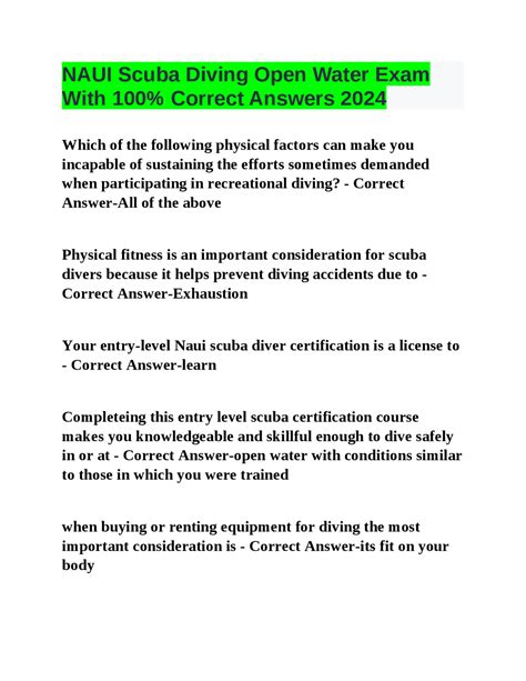 Read Online NAUI SCUBA DIVER STUDENT WORKBOOK ANSWERS Free Download PDF